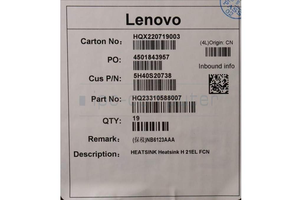 Lenovo 5H40S20738 Heatsink H 21EL FCN