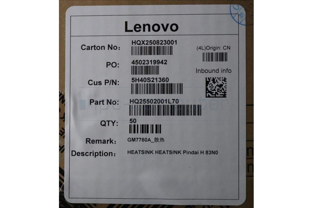 Lenovo 5H40S21360 HEATSINK Pindai H 83N0