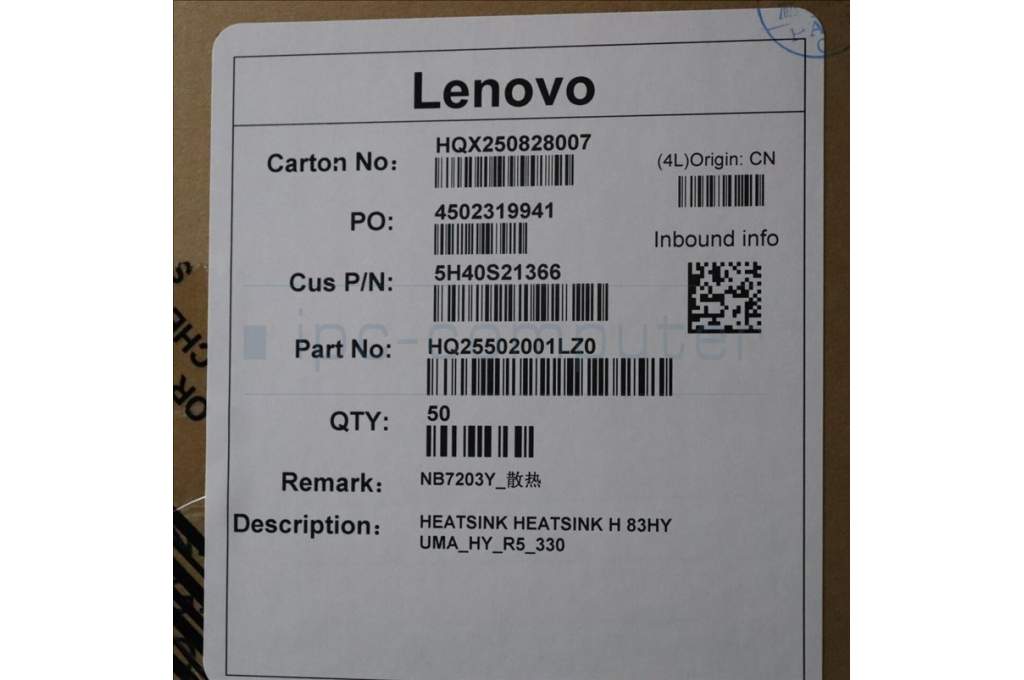 Lenovo 5H40S21366 HEATSINK H 83HY UMA_HY_R5_330