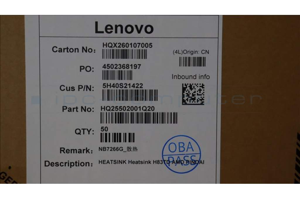 Lenovo 5H40S21422 Heatsink H83TD AMD PINDAI