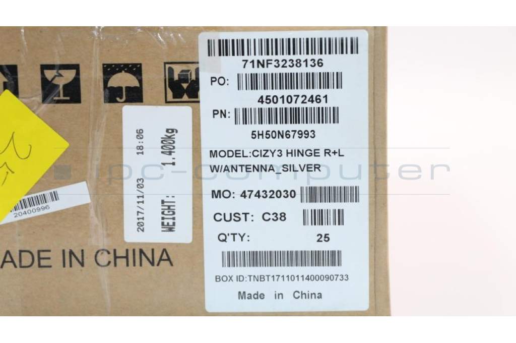Lenovo 5H50N67993 HINGE Hinge C 80X6 W/ANT R+L Silver