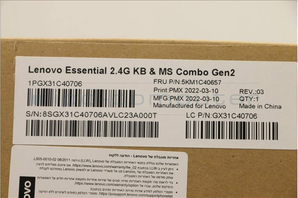 Lenovo 5KM1C40657 Keyboard_Mouse,Wireless,Hebrew,White_Grey,Non_Backlight