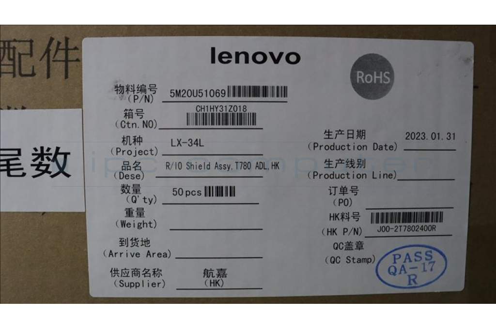 Lenovo 5M20U51069 R/IO Shield Assy,T780 ADL,HK